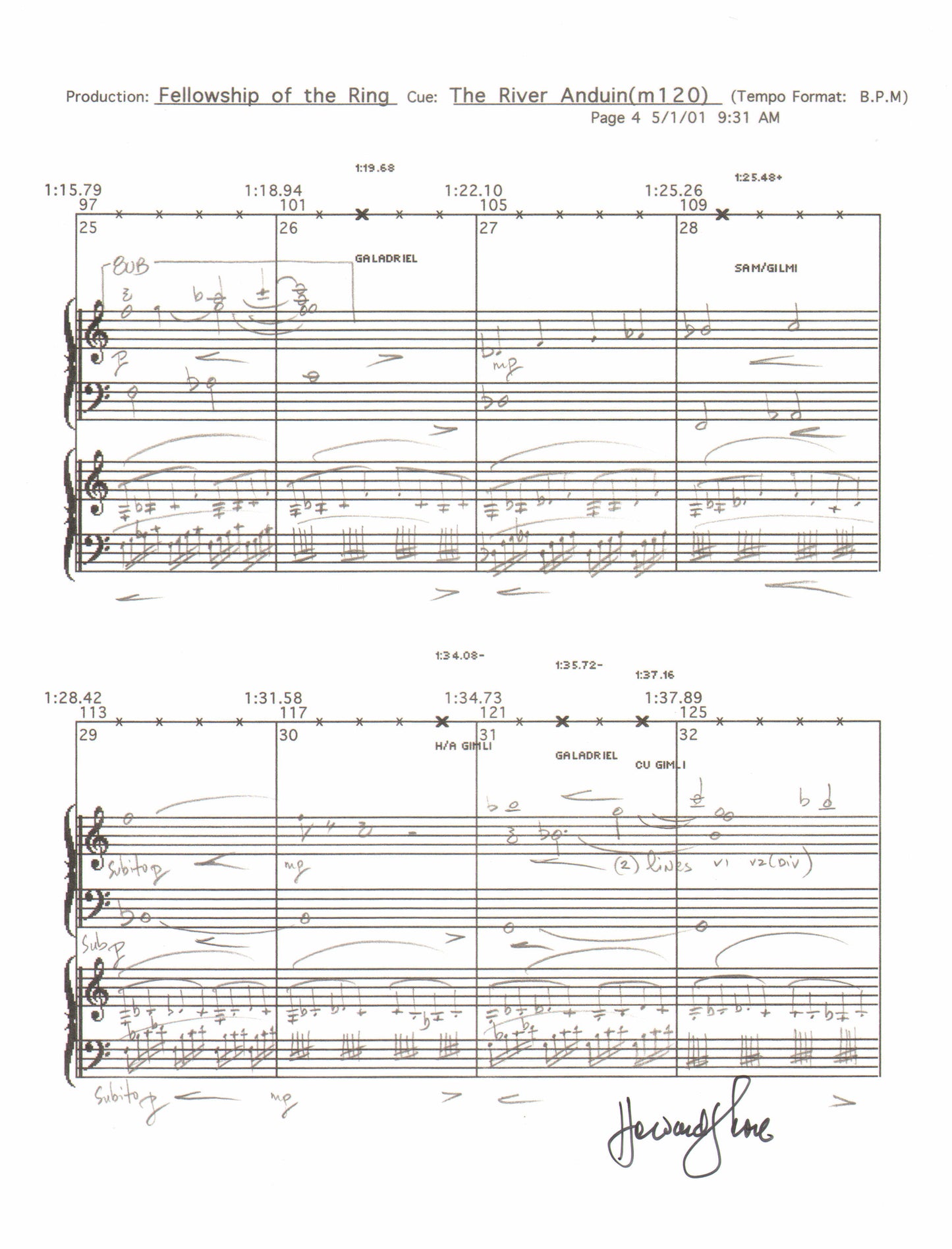 Lord of the Rings: Fellowship of the Ring Sheet Music 8.5x11 Copy Signed by Composer Howard Shore