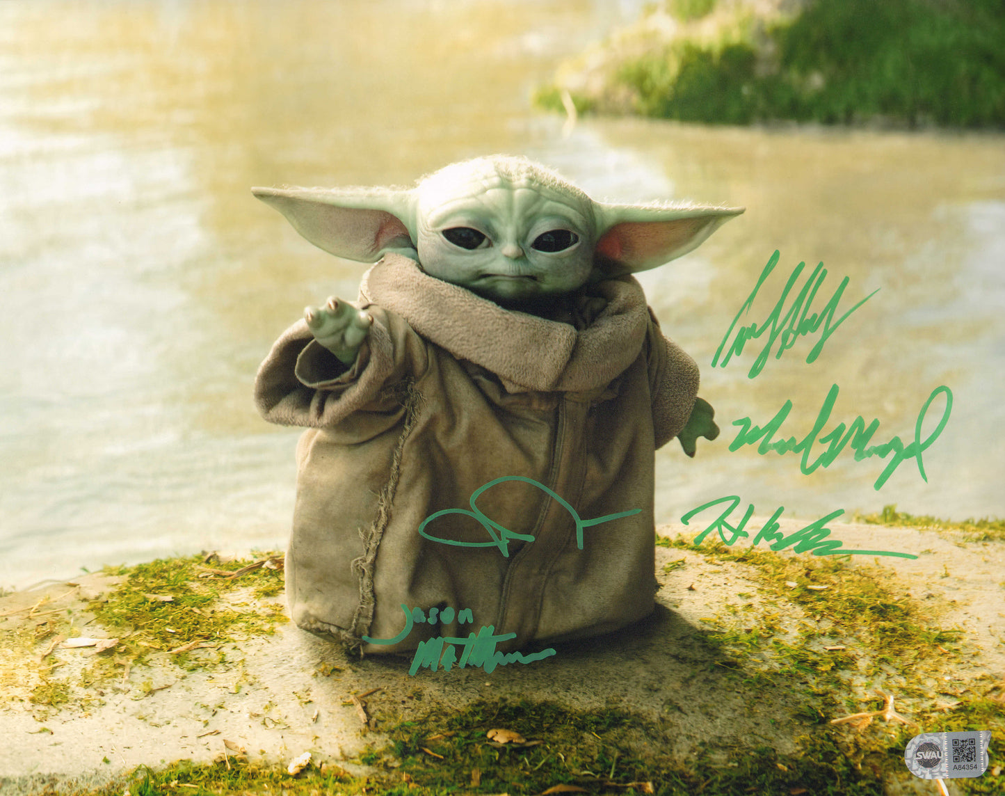 Star Wars: The Mandalorian Baby Yoda Grogu (SWAU) 11x14 Photo Signed by John Rosengrant, Trevor Hensley, Jason Matthews, Mike Manzel, & Hiroshi (Kan) Kieuchi