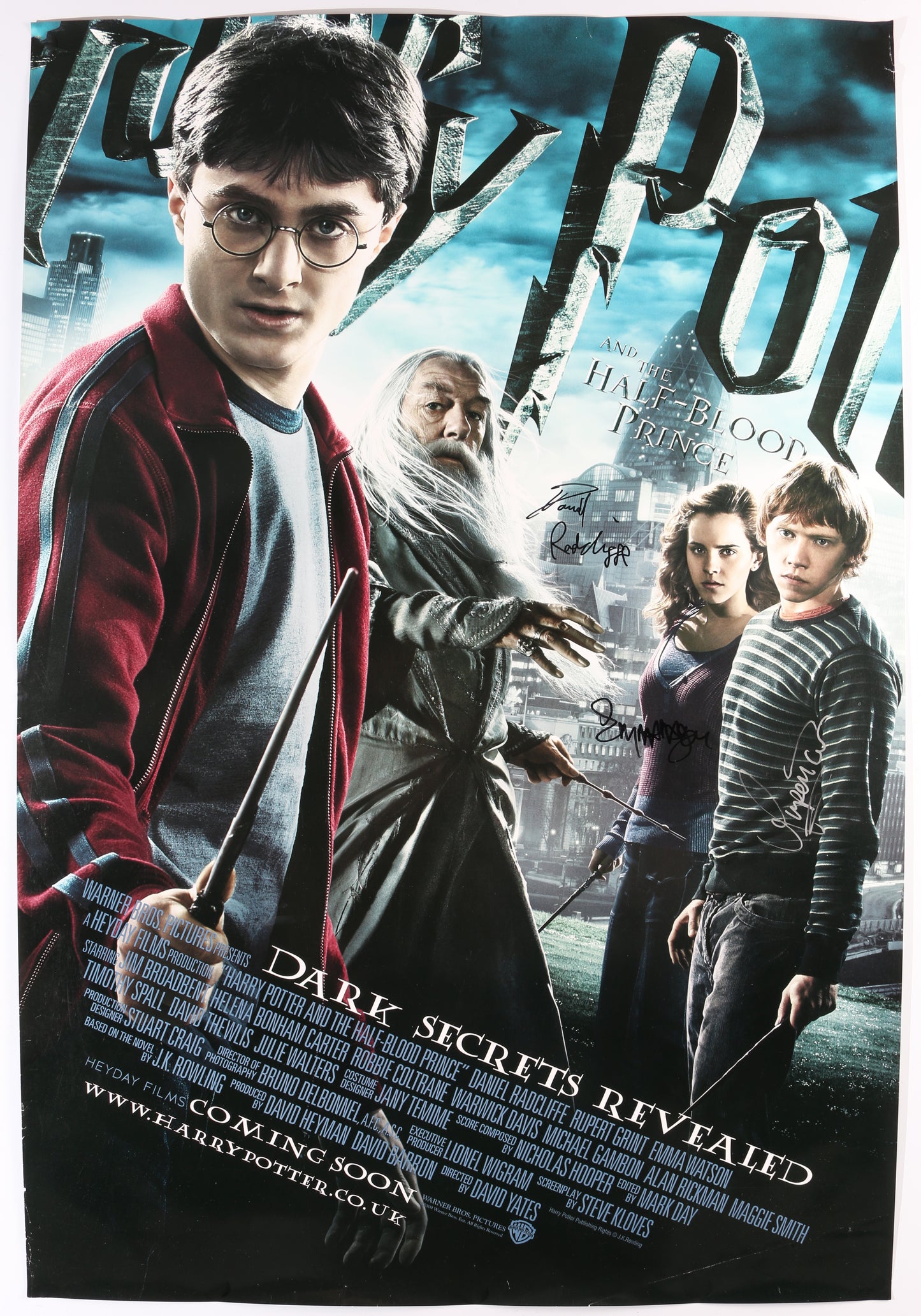 Daniel Radcliffe as Harry Potter, Emma Watson as Hermione Granger, & Rupert Grint as Ron Weasley in Harry Potter & the Half-Blood Prince Signed 27x40 Poster