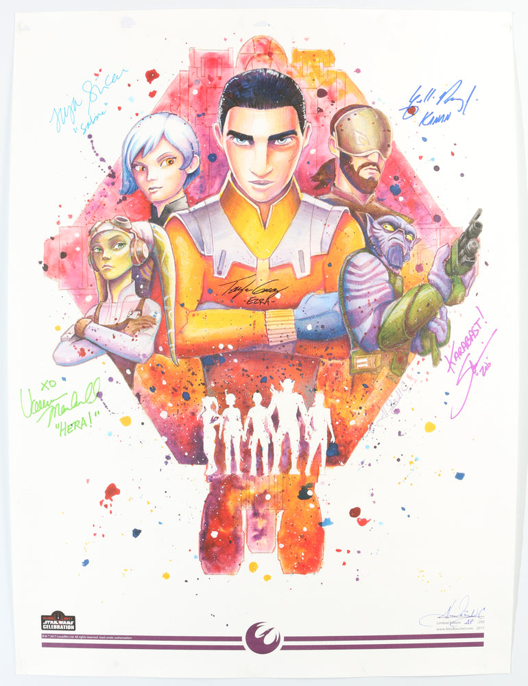 Star Wars: Rebels 18x24 Alex Buechel Art Print #AP/250 (Official Pix, Echo Base, Beckett) Signed by Taylor Gray, Vanessa Marshall, Freddie Prinze Jr., Tiya Sircar, & Steve Blum with Character Names