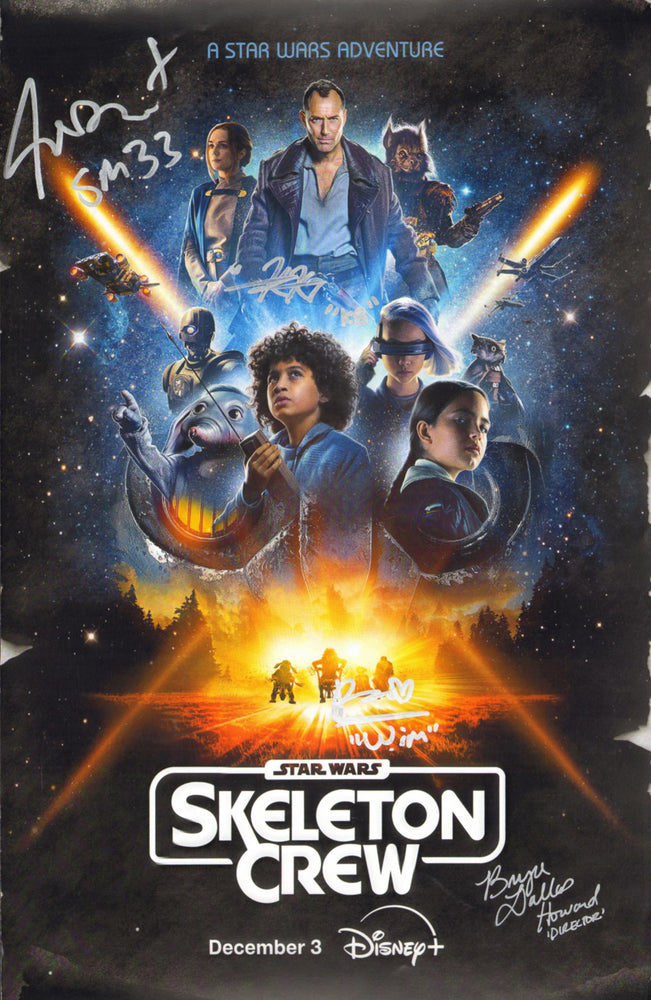 Star Wars: Skeleton Crew (Official Pix/JSA) 11x17 Mini Poster Cast Signed by Bryce Dallas Howard, Kyriana Kratter, Nick Frost, & Ravi Cabot-Conyers with Character Names
