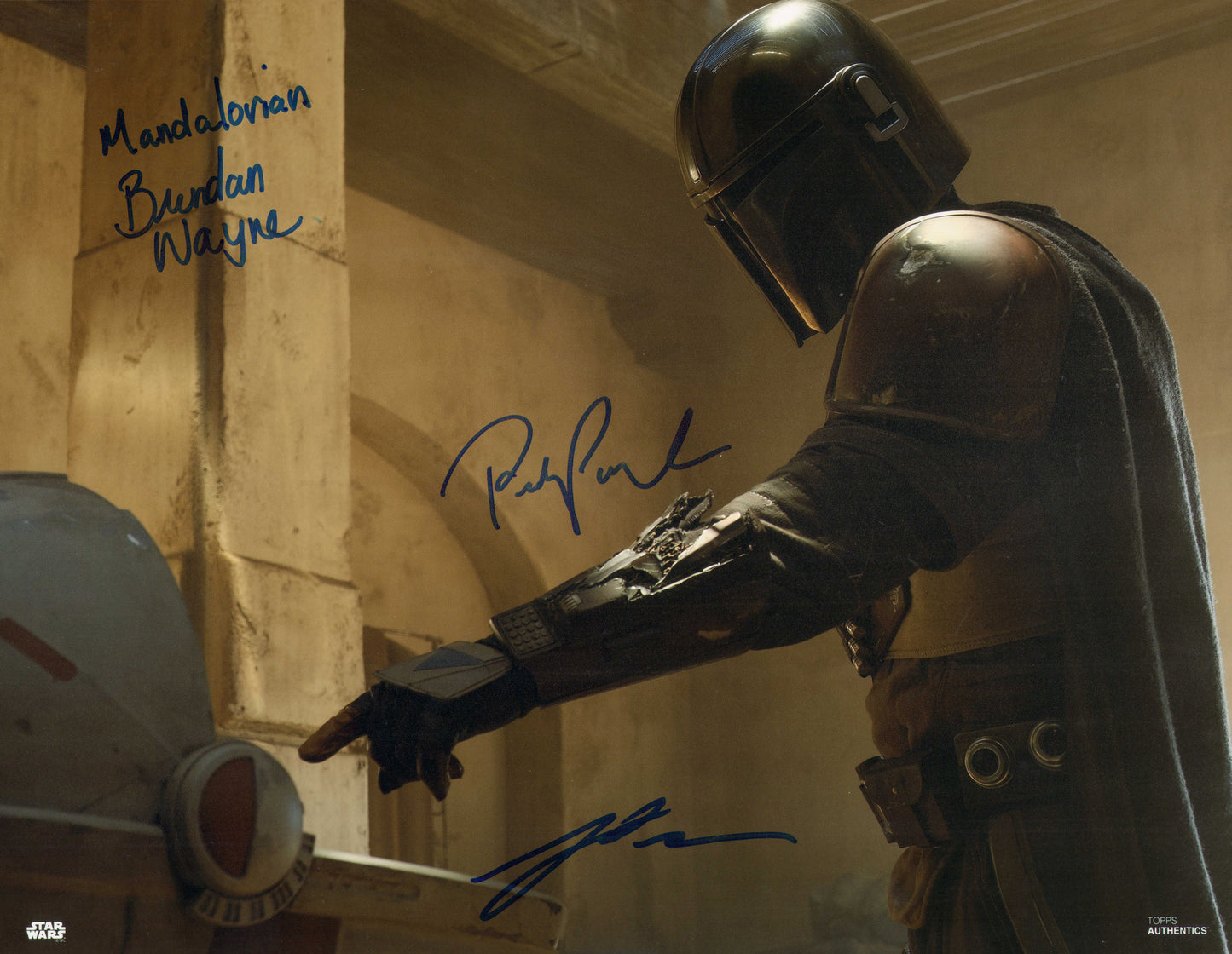 Pedro Pascal, Brendan Wayne, & Lateef Crowder as The Mandalorian in Star Wars: The Mandalorian (Beckett) Signed 11x14 Photo with Character Name