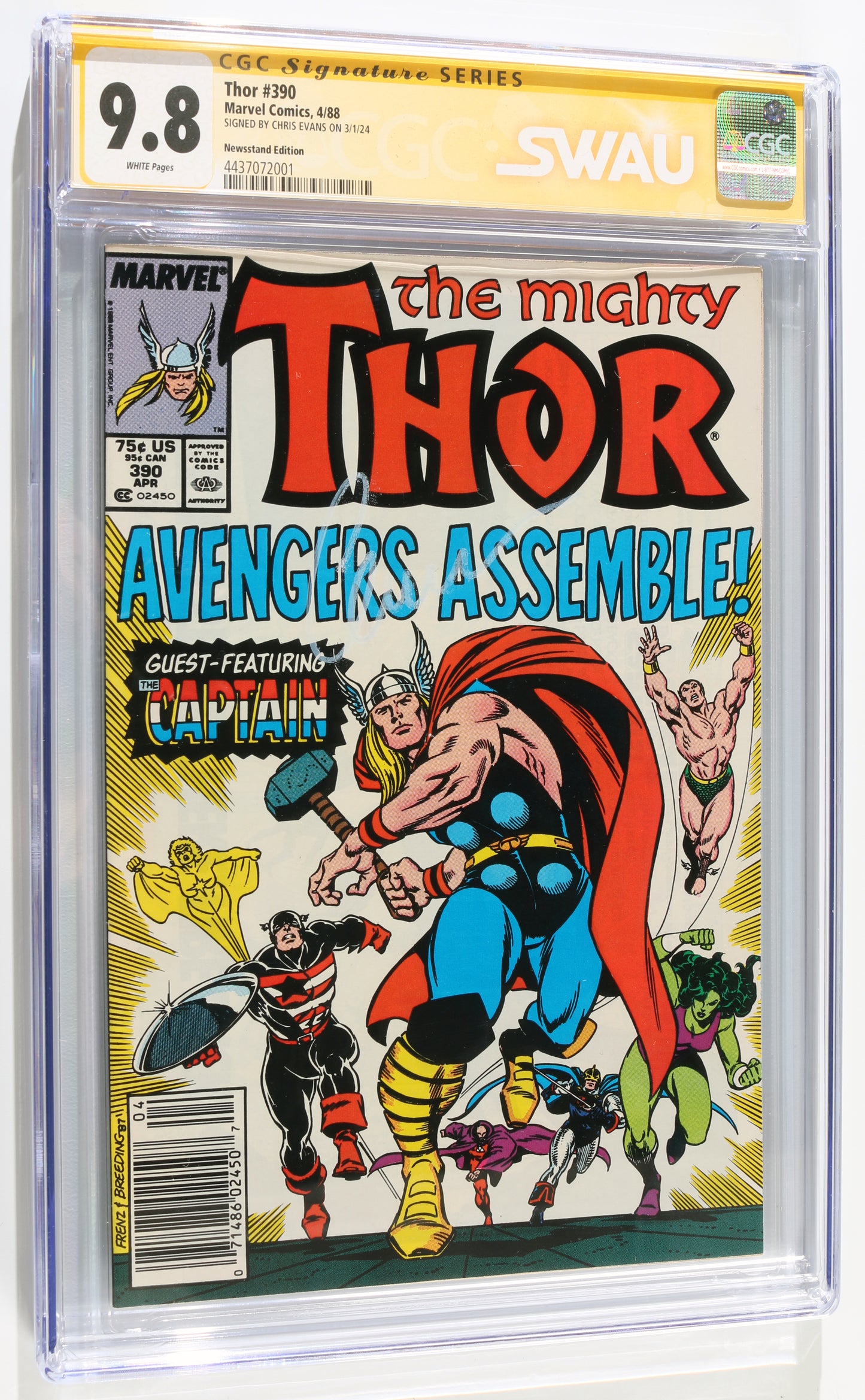 Marvel's Thor #390 - Signed by Signed by Chris Evans as Captain America from The Avengers (SWAU CGC Signature Series 9.8) 1988