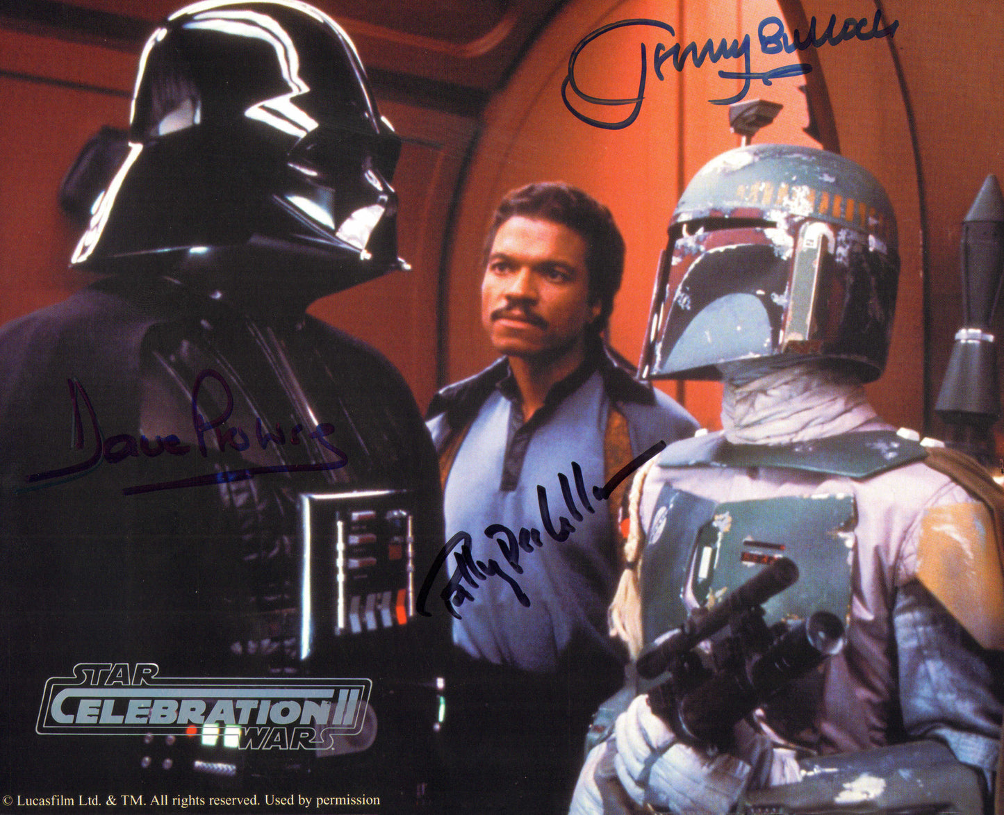 Dave Prowse as Darth Vader, Jeremy Bulloch as Boba Fett, & Billy Dee Williams as Lando in Star Wars: The Empire Strikes Back (Official Pix Celebration II) Signed 8x10 Photo