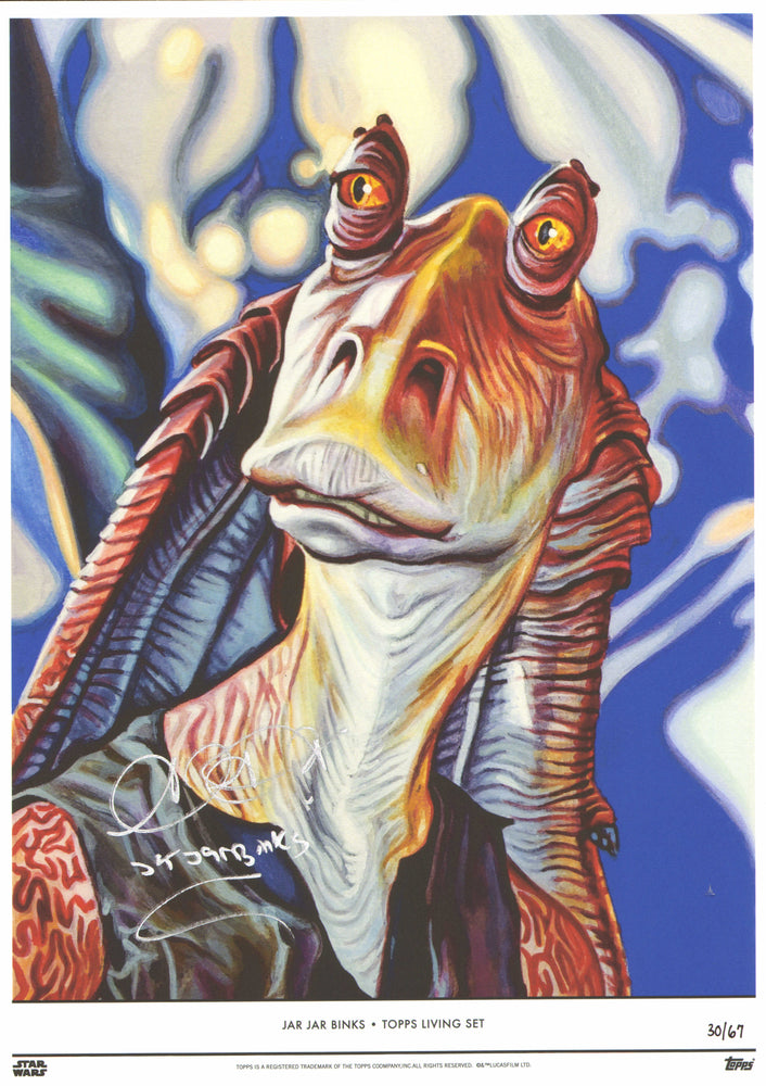 Ahmed Best as Jar Jar Binks in Star Wars Episode I: The Phantom Menace Signed 10x14 Topps Living Set Art Print #30/67 with Character Name