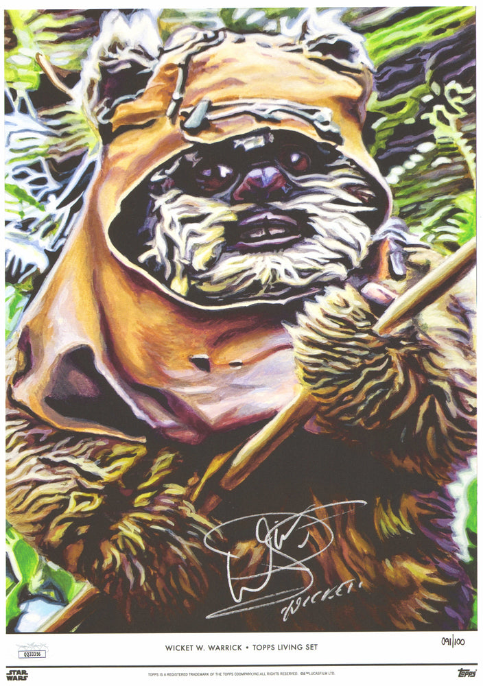 Warwick Davis as Wicket in Star Wars: Return of the Jedi (JSA) Signed 10x14 Topps Living Set Art Print #91/100 with Character Name