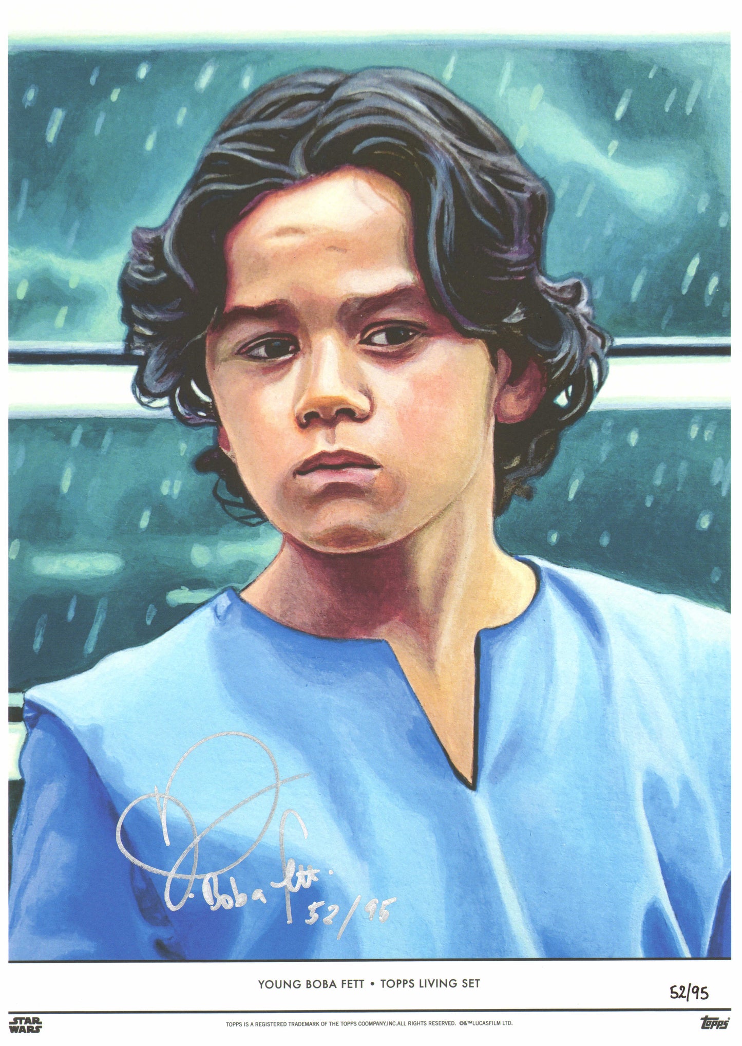 Daniel Logan as Young Boba Fett in Star Wars Episode II: Attack of the Clones (JSA) Signed 10x14 Topps Living Set Art Print #52/95 with Character Name