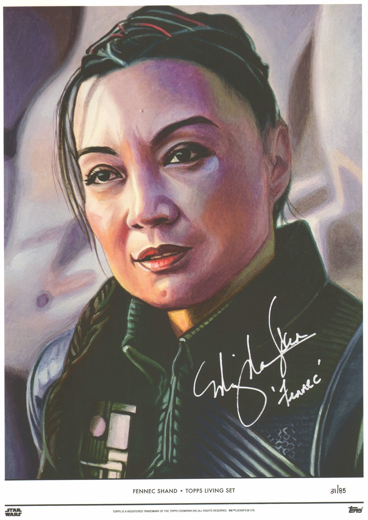 Ming-Na Wen as Fennec Shand in Star Wars: The Mandalorian (JSA) Signed 10x14 Topps Living Set Art Print #31/85 with Character Name