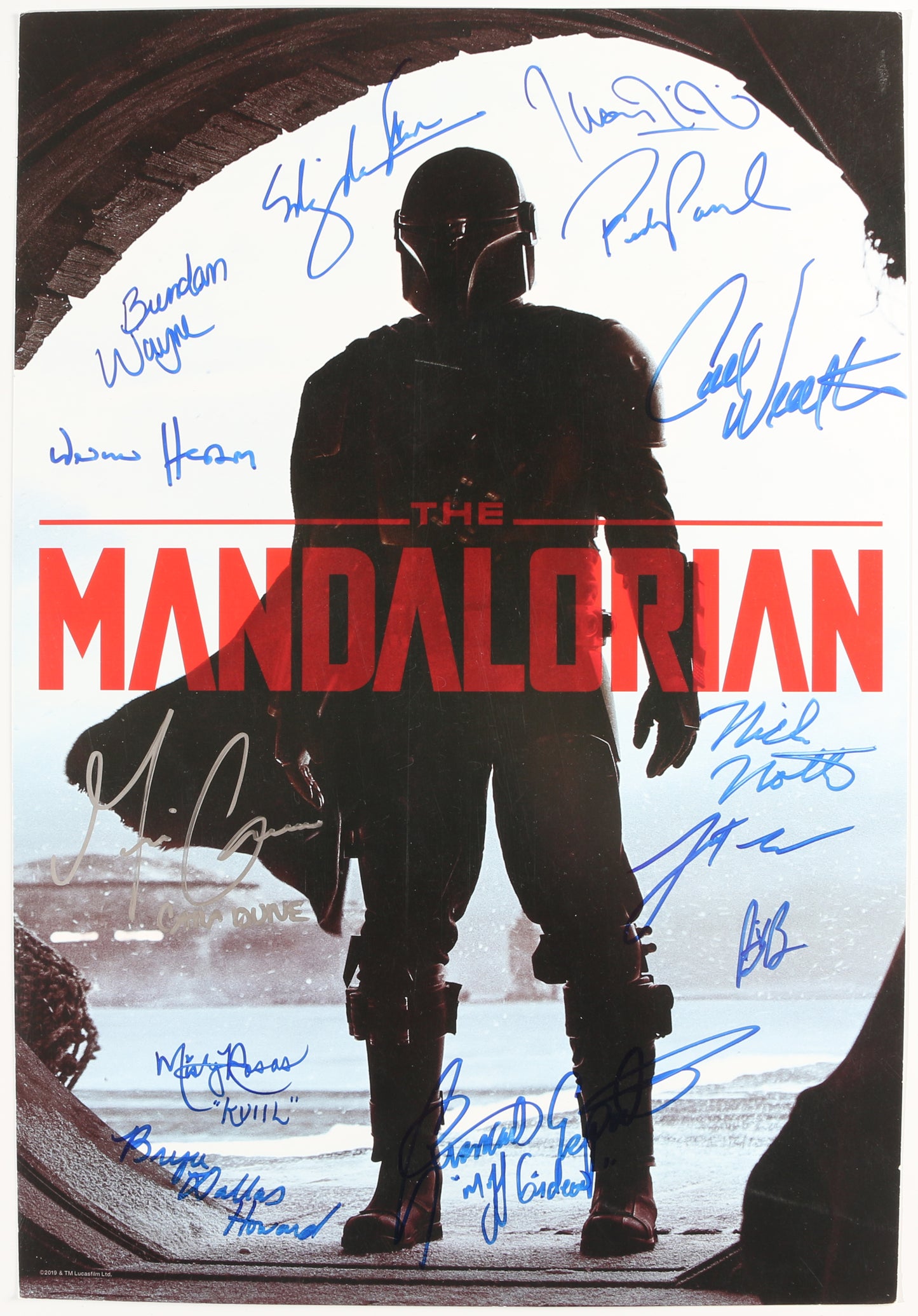 Star Wars: The Mandalorian (Beckett) 13x19 Mini Poster Cast Signed by Pedro Pascal, Gina Carano, Nick Nolte, Brendan Wayne, Lateef Crowder, Giancarlo Esposito, Carl Weathers, Werner Herzog, Ming-Na Wen, Bill Burr, & Taika Waititi