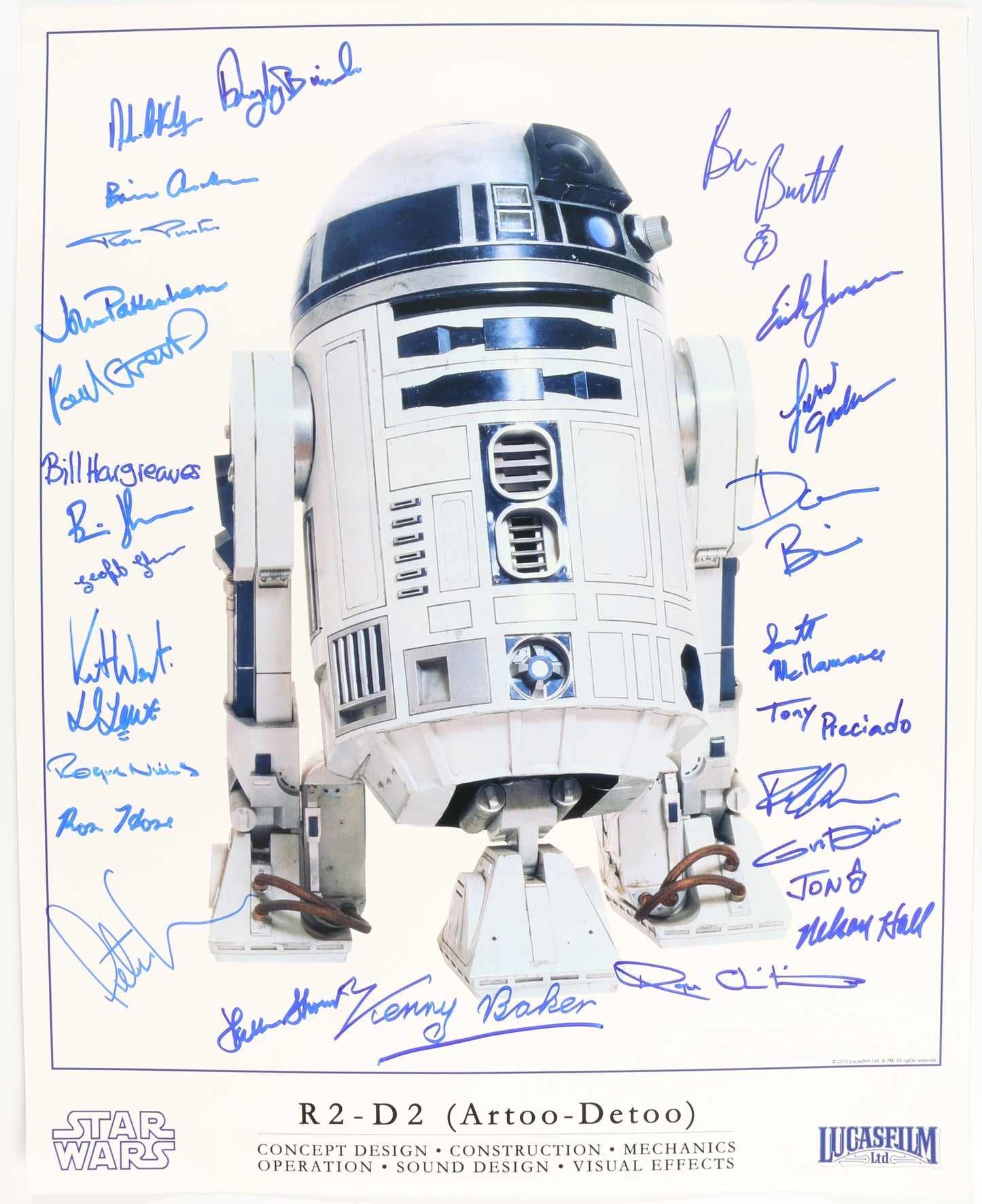 R2-D2 from Star Wars 16x20 Photo Signed by 27 ILM Behind the Scenes Creators including Brian Archer, Kenny Baker, Don Bies, Ben Burtt, Roger Christian, Gus Dizon, Preston Donovan, Jon Farmer, Geoff Glover, Nelson Hall, Bill Hargreaves, & More