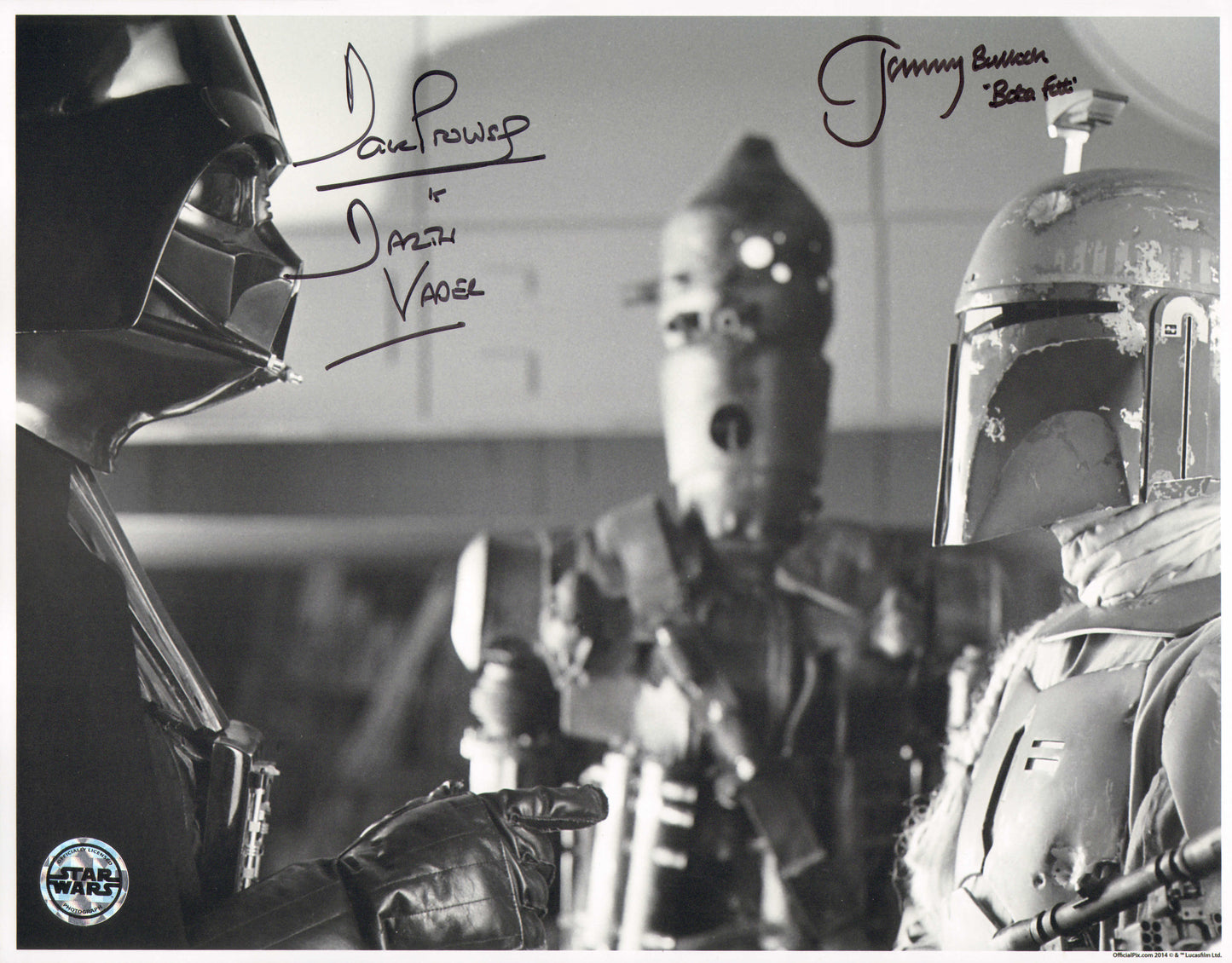 Dave Prowse as Darth Vader & Jeremy Bulloch as Boba Fett in Star Wars: The Empire Strikes Back (Official Pix) Signed 11x14 Photo with Character Names