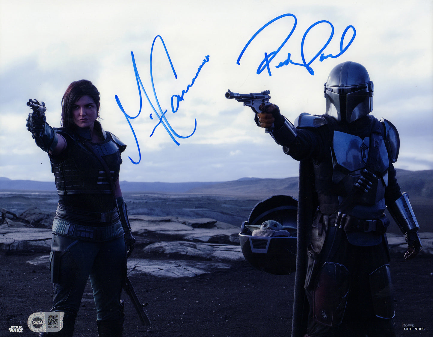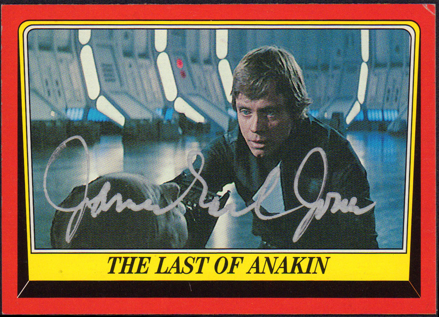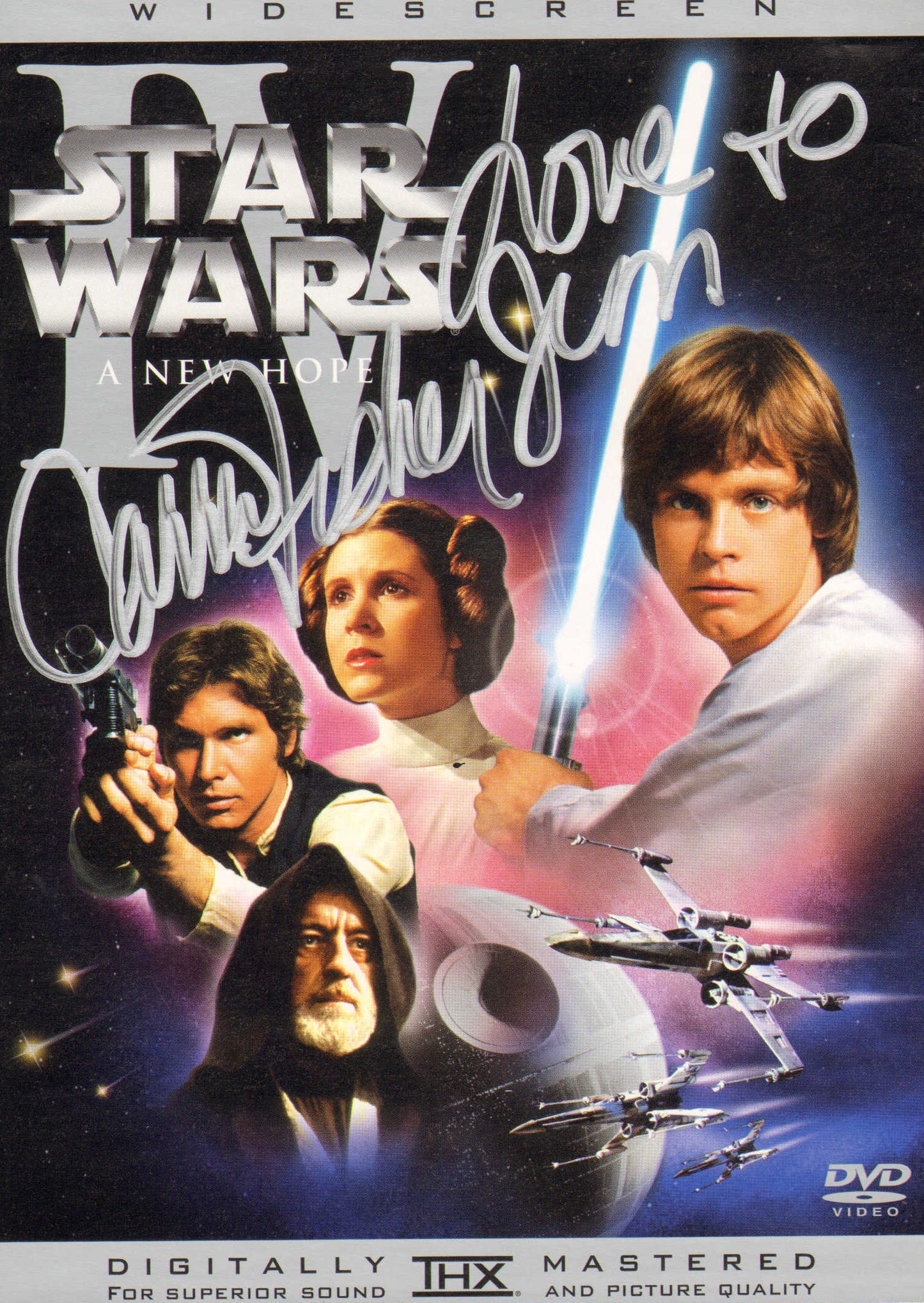 EX / NM condition. OPX & BAS stickers on the back, along with some written signing notes. Carrie included her abbreviated character name of P.L.O. which stands for Princess Leia Organa. She likely was asked to sign this image as her character's holographic message was inside R2-D2.